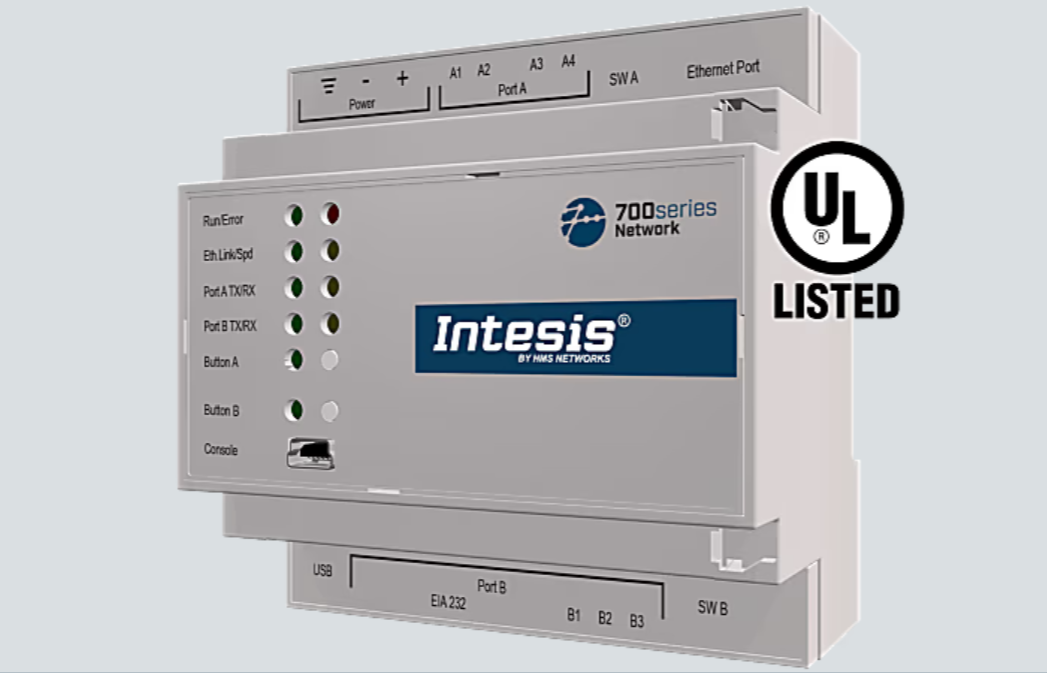 DALI-2 integration gateway application (1 DALI channel) to connect DALI/DALI-2 drivers and DALI-2 input devices (such as light or occupancy sensors) with BACnet building management systems. The gateway makes DALI devices and their data accessible from BACnet/IP and/or BACnet MS/TP controllers, configured via Intesis MAPS.