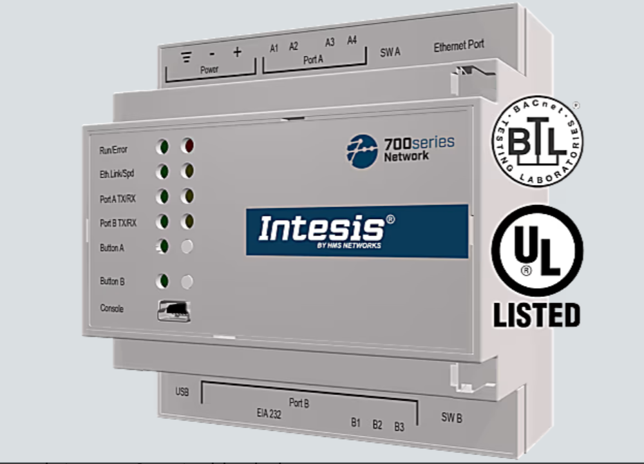 Intesis IN704DAL1280000 – DALI-2 to Modbus TCP or BACnet/IP Server Application with 2 DALI Channels